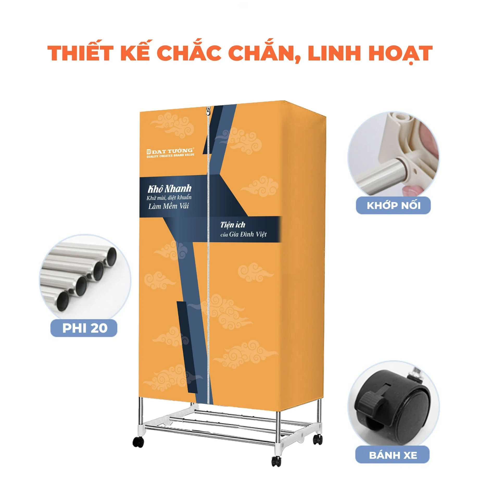 - Với trọng lượng từ 25-30kg và bánh xe tiện lợi, bạn có thể dễ dàng di chuyển tủ sấy quần áo đến bất kỳ nơi đâu trong ngôi nhà của bạn.
