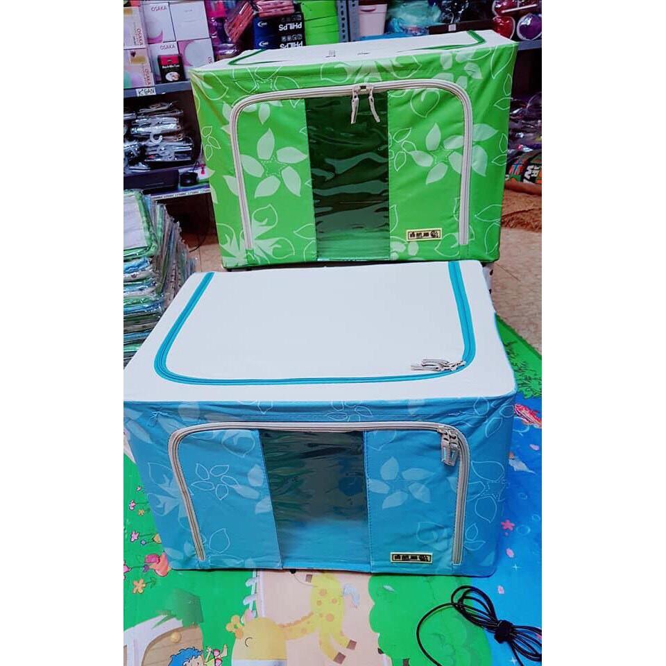 Túi đựng quần áo chăn màn khung sắt có nhiều màu là hồng chấm bi, xanh chấm bi, xanh họa tiế
