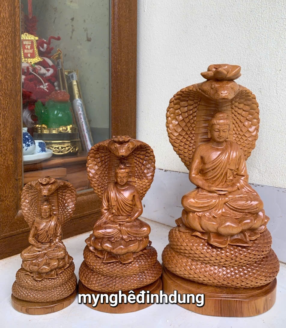 _Tượng thần rắn bảo vệ Đức Phật xông trầm được làm bằng chất liệu gỗ bách xanh liền khối tự nhiên 100%