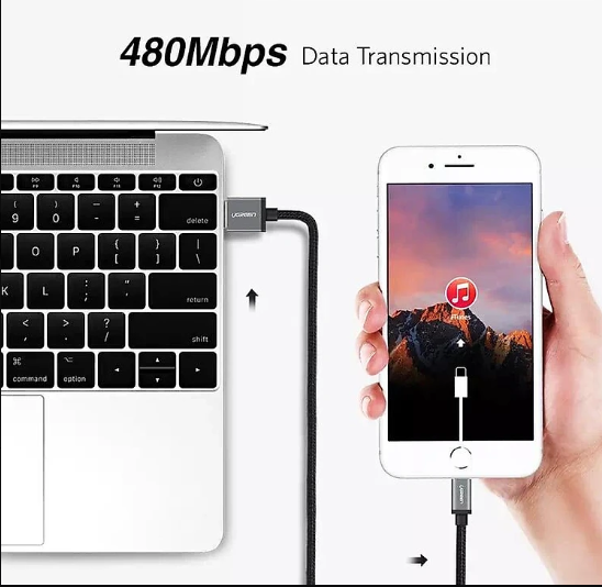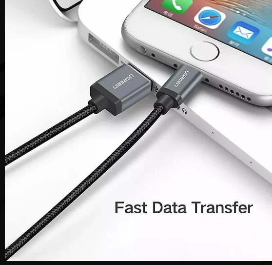 Cáp sạc và truyền dữ liệu Ugreen 40985 dài 1M MFI Light-ning sang USB : Cáp Vỏ Nhôm + dây Bện US199