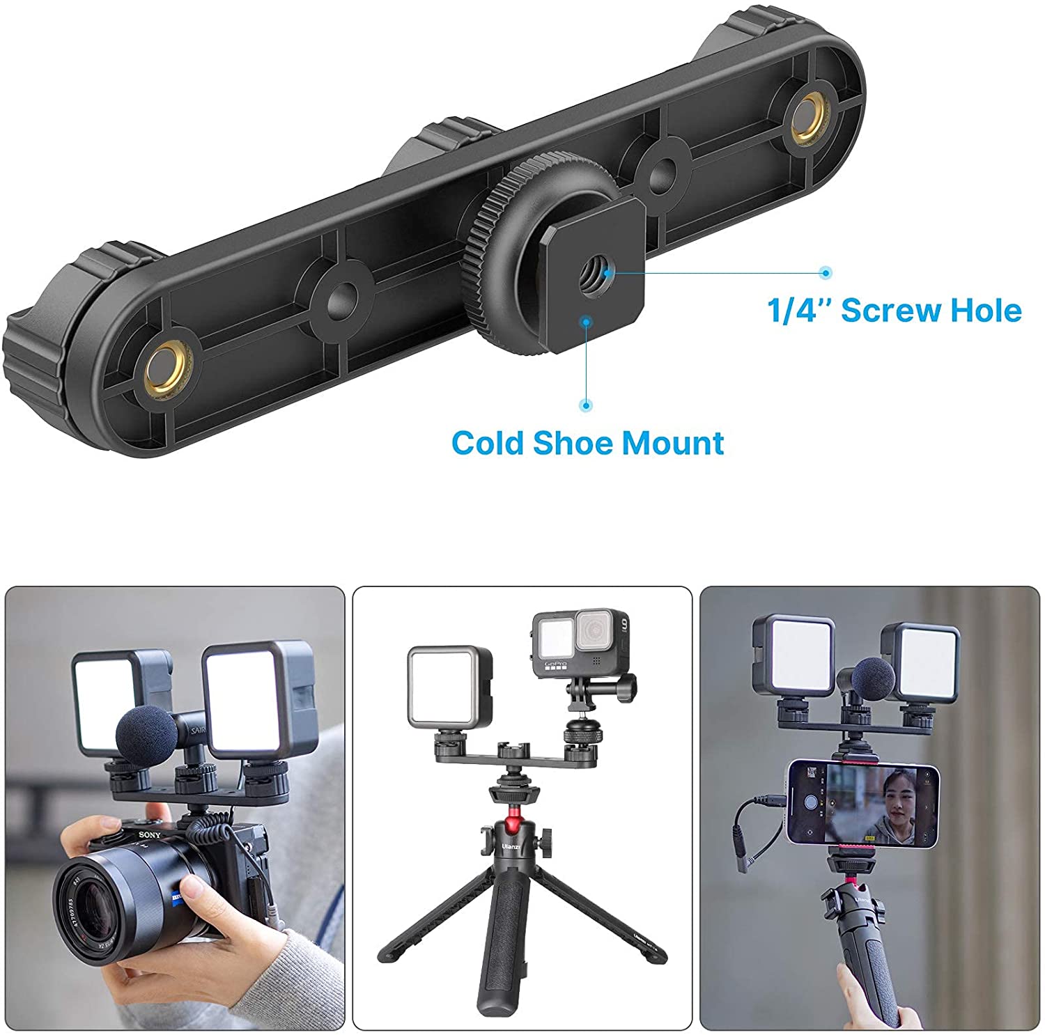 Ulanzi PT-23, Giá Đỡ Mở Rộng Với 3 Cold Shoe Mount Dùng Cho Máy Ảnh & Điện Thoại