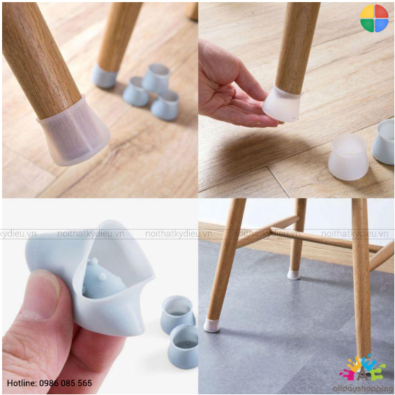 Lưu ý: Chất liệu mềm mại, có các hạt chống trượt, thích hợp cho chân bàn và ghế có đường kính dưới 4cm.