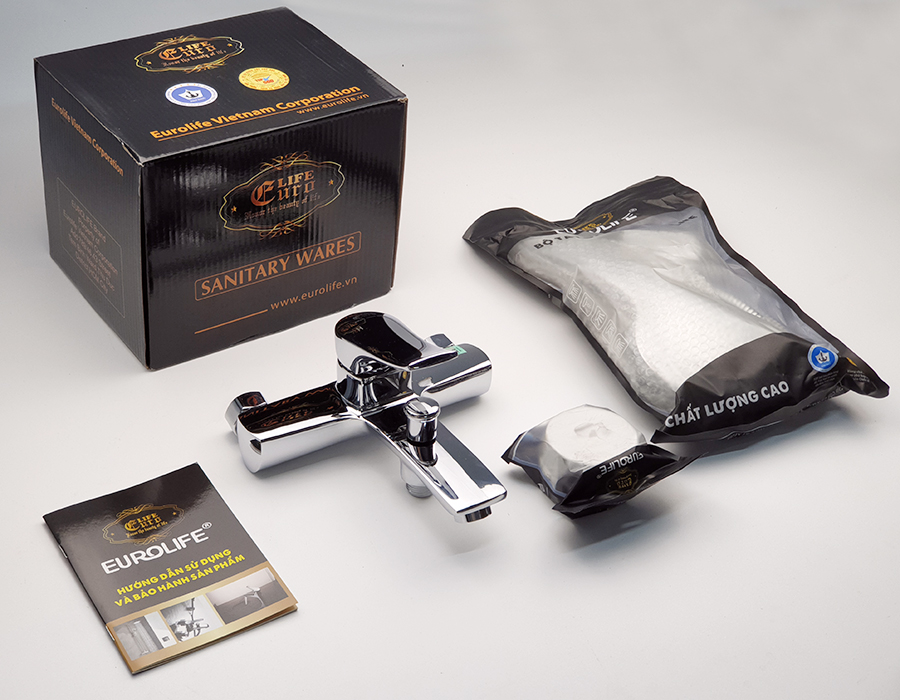 Bộ vòi sen nóng lạnh Đồng mạ Chrome Eurolife EL-ROS 01* Hãng sản xuất : Eurolife Việt Nam* Chất liệu : Sản phẩm được đúc trọng lực từ Đồng H61 mạ Crome 3 lớp. Độ bóng sáng cao và không bị dính két vế...