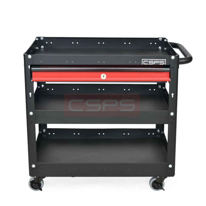 Xe đẩy CSPS 3 ngăn màu đen 01 hộc kéo màu đỏ - 71cm